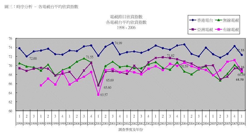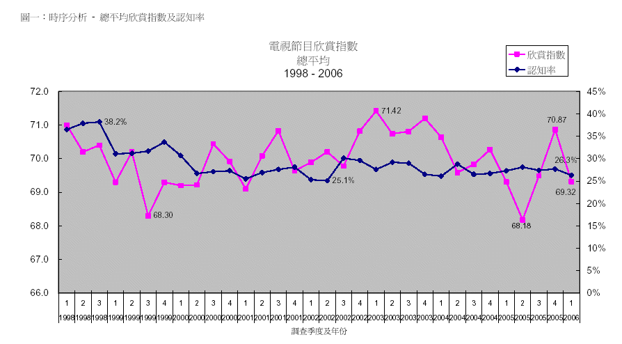 各電視台平均欣賞指數及認知率 (1998 - 2006)