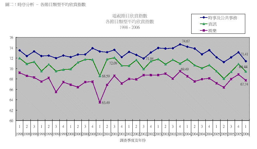 各節目類型平均欣賞指數及認知率 (1998 - 2006)